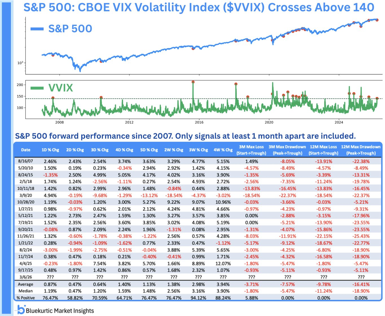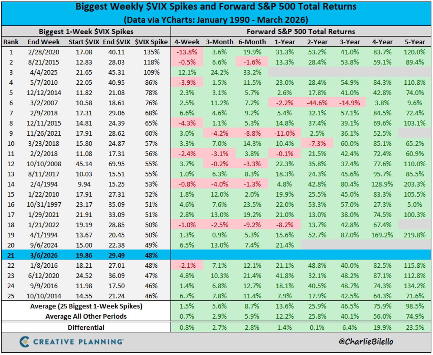 The first week in March saw the 21st largest weekly VIX spike ever. Looking forward from there, returns tended to be above average-
