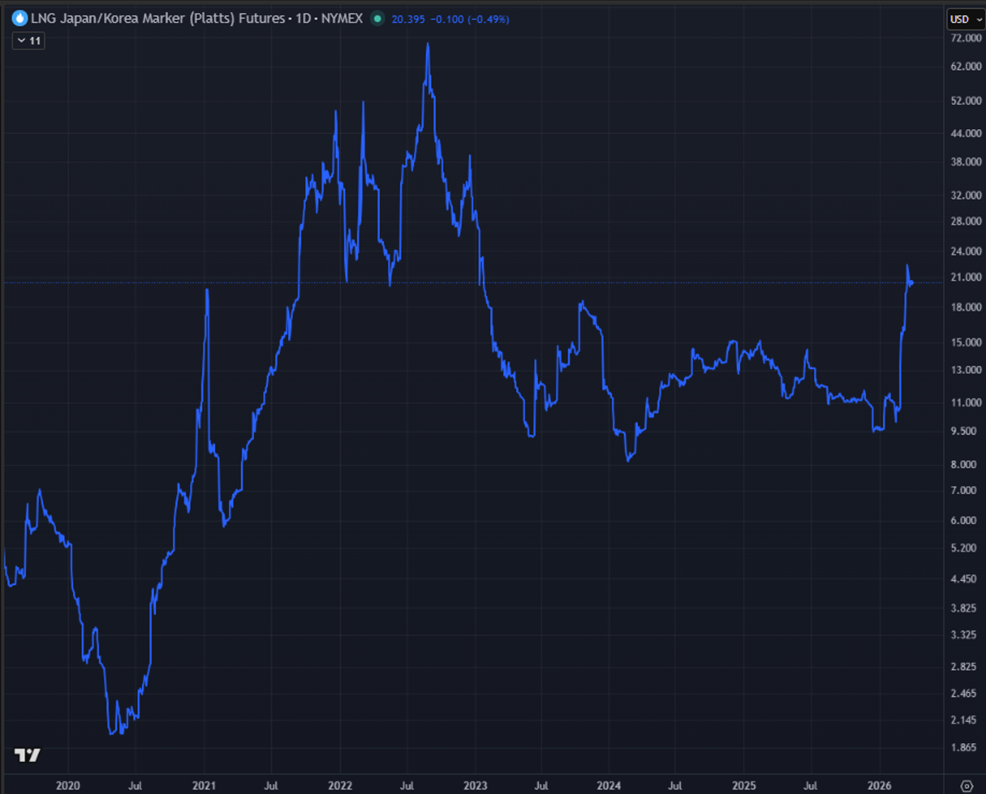 Front-month Asian LNG prices approximately doubled in March-