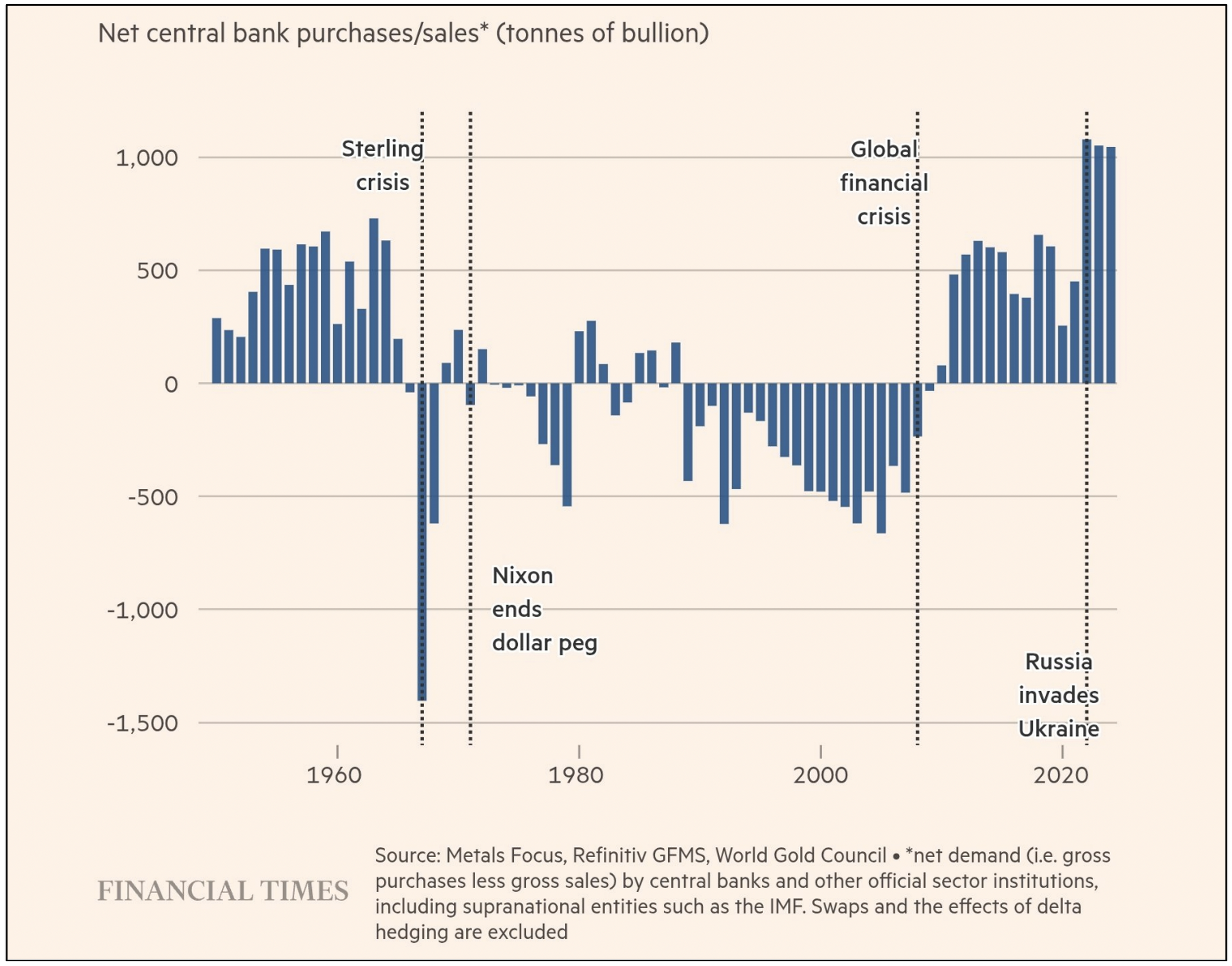 The chart drives home some major points. First, everything really did change after the financial crisis. The world was QUITE comfy storing value in dollars and Treasuries until the US started bailing out banks and printing money in serious size out of thin air. The US response to the GFC made the world rethink its exposure to gold relative to dollars and Treasuries. Second, things changed again when Russia attacked Ukraine and the US froze Russia’s gold (to the tune of $300bn) and Russia’s access to the dollar. That made the world rethink its exposure to gold further still. This trend strikes me as supportive for BTC.