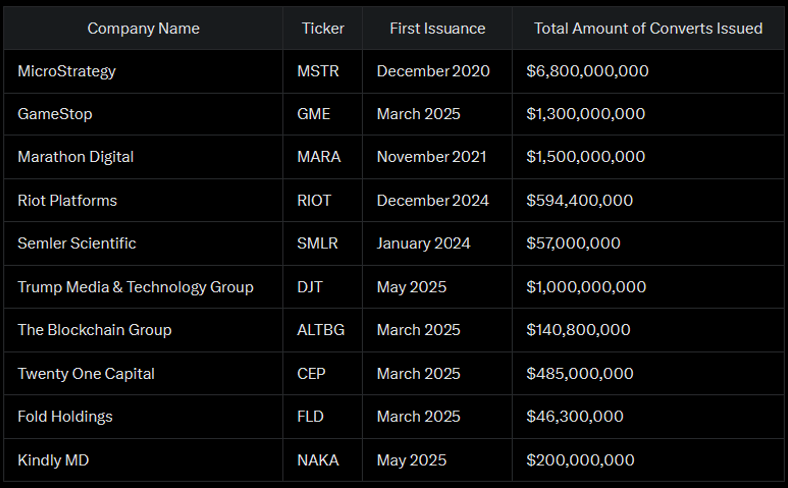 It started with ~$500mm market cap Semler Scientific in early 2024, issuing a $57mm convert to buy BTC. Not long after, Japan-listed Metaplanet, dubbed “Asia’s MicroStrategy” started buying BTC on its balance sheet, issuing both common equity and zero-coupon bonds.