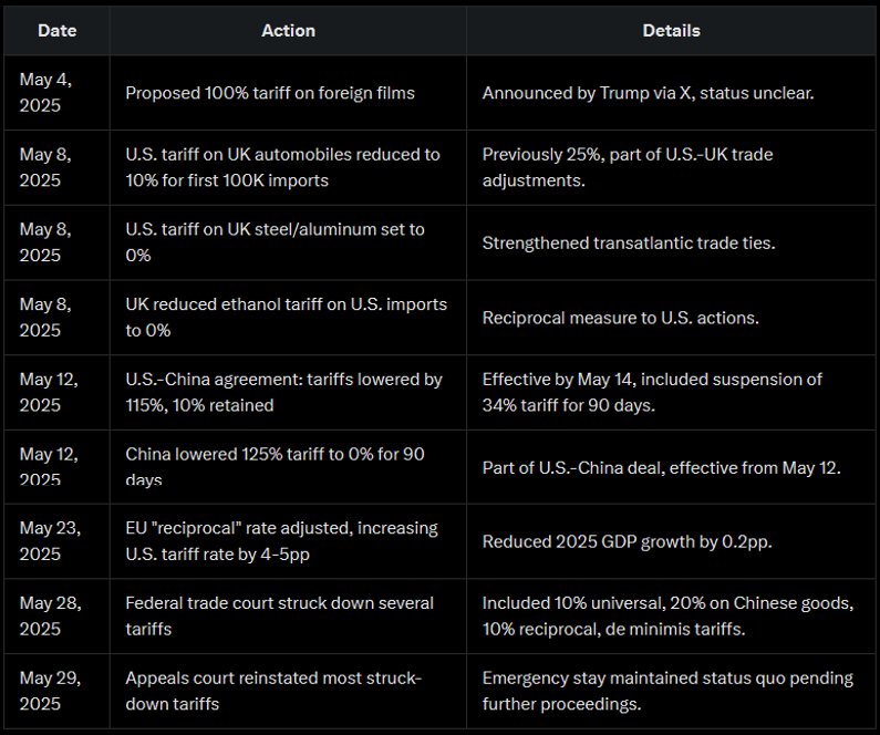 To that end, for macro, May was characterized by the alleviation of tariff fears – a continuation from April – headlined by the US and China meeting for negotiations in Switzerland and coming away with a bilateral 115% reduction in tariffs. For crypto, May was characterized by a slew of crypto treasury deals with publicly traded companies. All-in, it was good enough for a new daily, weekly and monthly ATH in BTC.