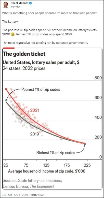 What does that mean for stocks and crypto? Well, NASDAQ was +54% last year while the Fed embarked on its most aggressive rate hiking campaign ever. And YTD, the market has gone from 6 cuts to 1 ½ cuts and Q’s are still +5% YTD. Is there a world where we go from 1 ½ rate cuts to 0 in 2024 (or even hikes in 25) and Q’s end the year up say, 15%? I think there is, but it could be choppy in the coming months. Now on to other random things.