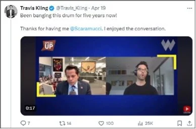 One last comment I want to make about BTC and reflexivity -a topic I’ve been talking about here for 5+ (wow) years. The ETFs introduce a new component to BTC’s reflexivity because the buying and selling has never been easier, safer and more widely available, and it’s never been so transparent. It’s easy to understand how transparency and reflexivity would be so intertwined – if higher prices beget higher prices and lower prices beget lower prices (i.e., reflexivity), then transparent large scale buying and selling should only serve to further exacerbate those tendencies, because they are so clearly observed by market participants.